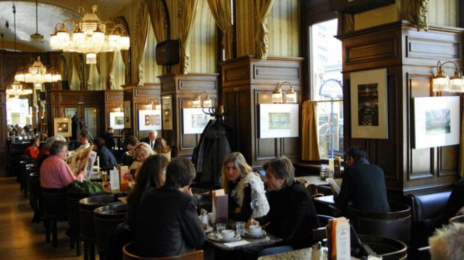 - Những quán café lớn và cổ (như Cafe Central, Landtmann, Griensteindl và Demel) là nơi thu hút du khách, nhưng người địa phương thì thích tụ tập ở những quán bình dân hơn như Cafe Frauenhuber, Braunerhof hoặc Sperlhof. “Ít nhất một nửa số khách là khách quen,” Christina Pritz nói, bà sống ở gần công viên Augarten. Cả Pritz và Quinn nói rằng họ thích Quán Phil ở Quận 6 ở trung tâm của Vienna, ở đó có rất nhiều sách để bán hoặc cho thuê và có các buổi hòa nhạc của các ban với nhạc cụ truyền thống hoặc chơi nhạc DJ vào buổi tối. Họ cũng nói về quán Hawelka ở Quận 1, ở đó chật chội nên người ta phải ngồi sát nhau và rồi thì làm quen.